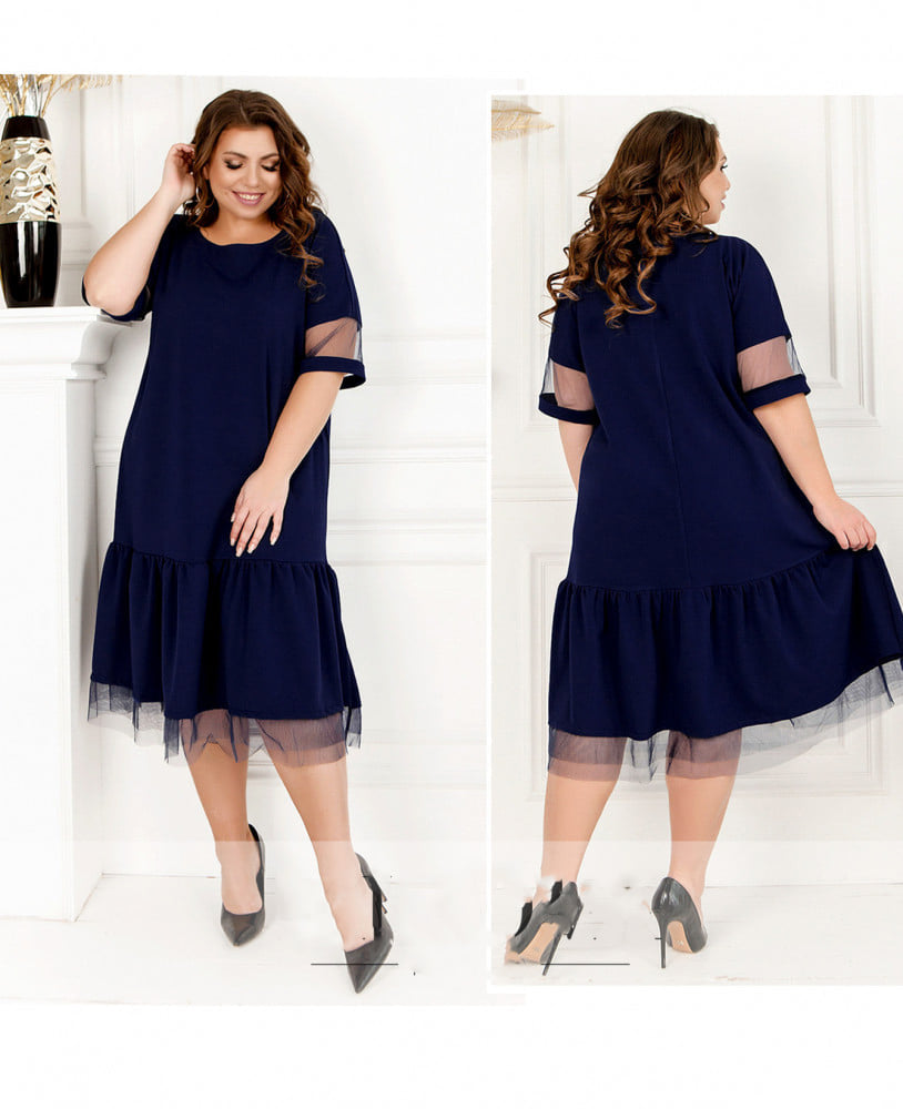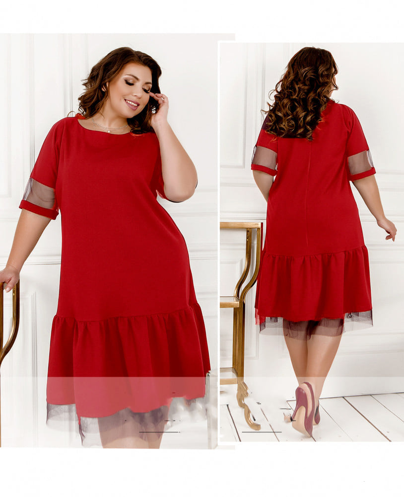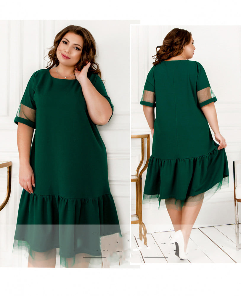Descriere produs – Rochie dreaptă scurtă cu cloș creț și mânecă din voal: Această rochie scurtă, dreaptă, cu cloș creț...