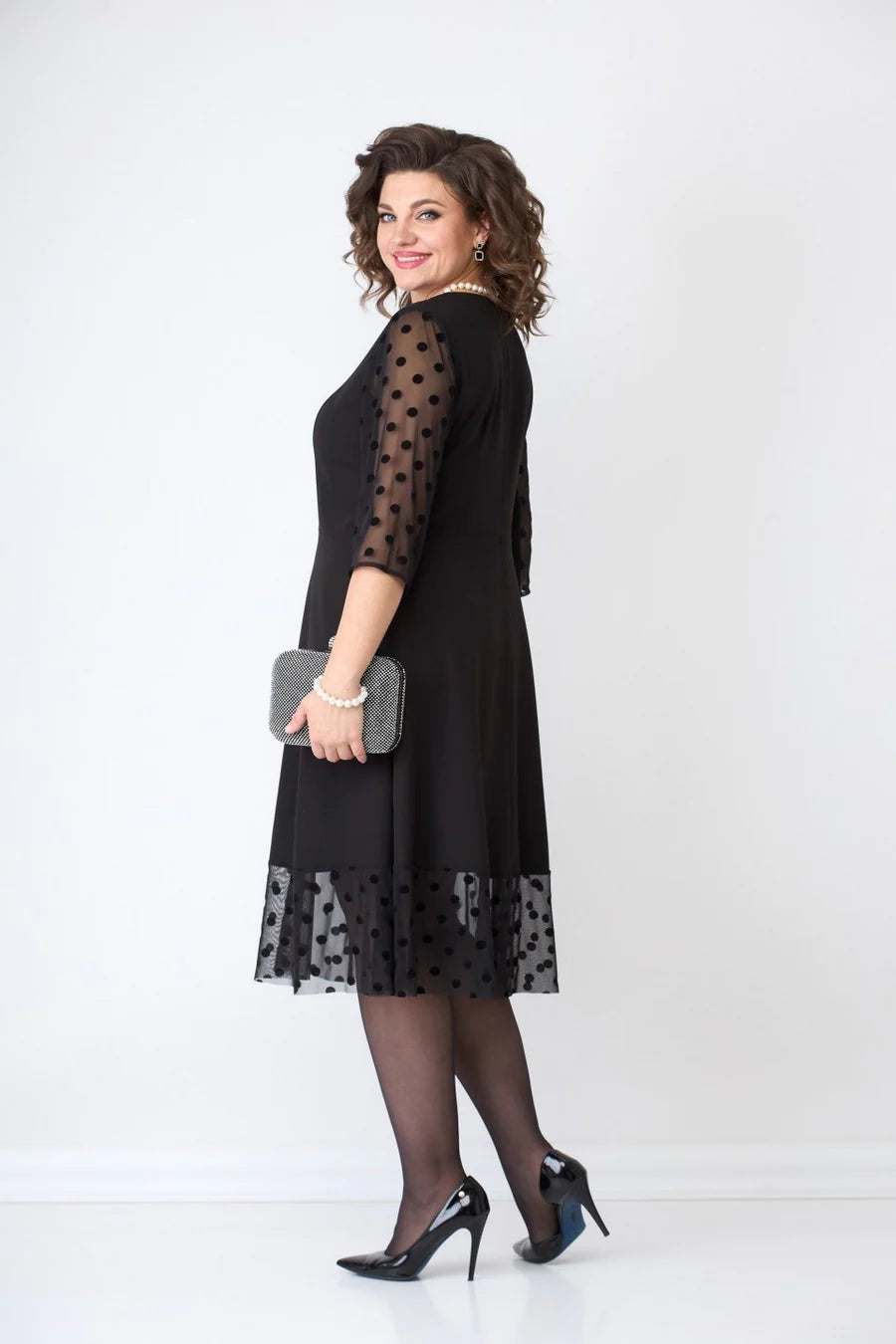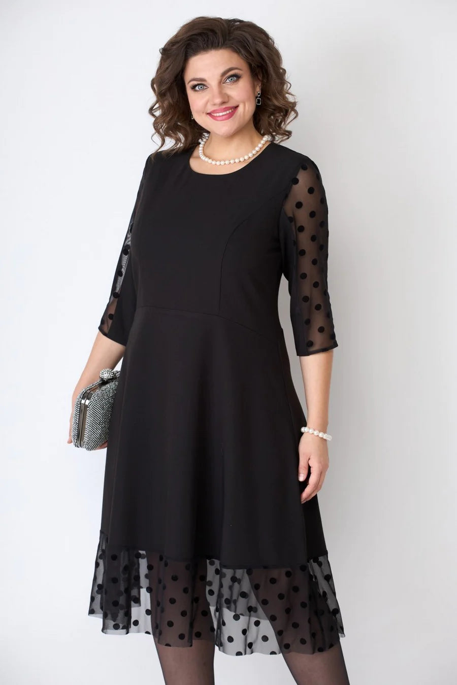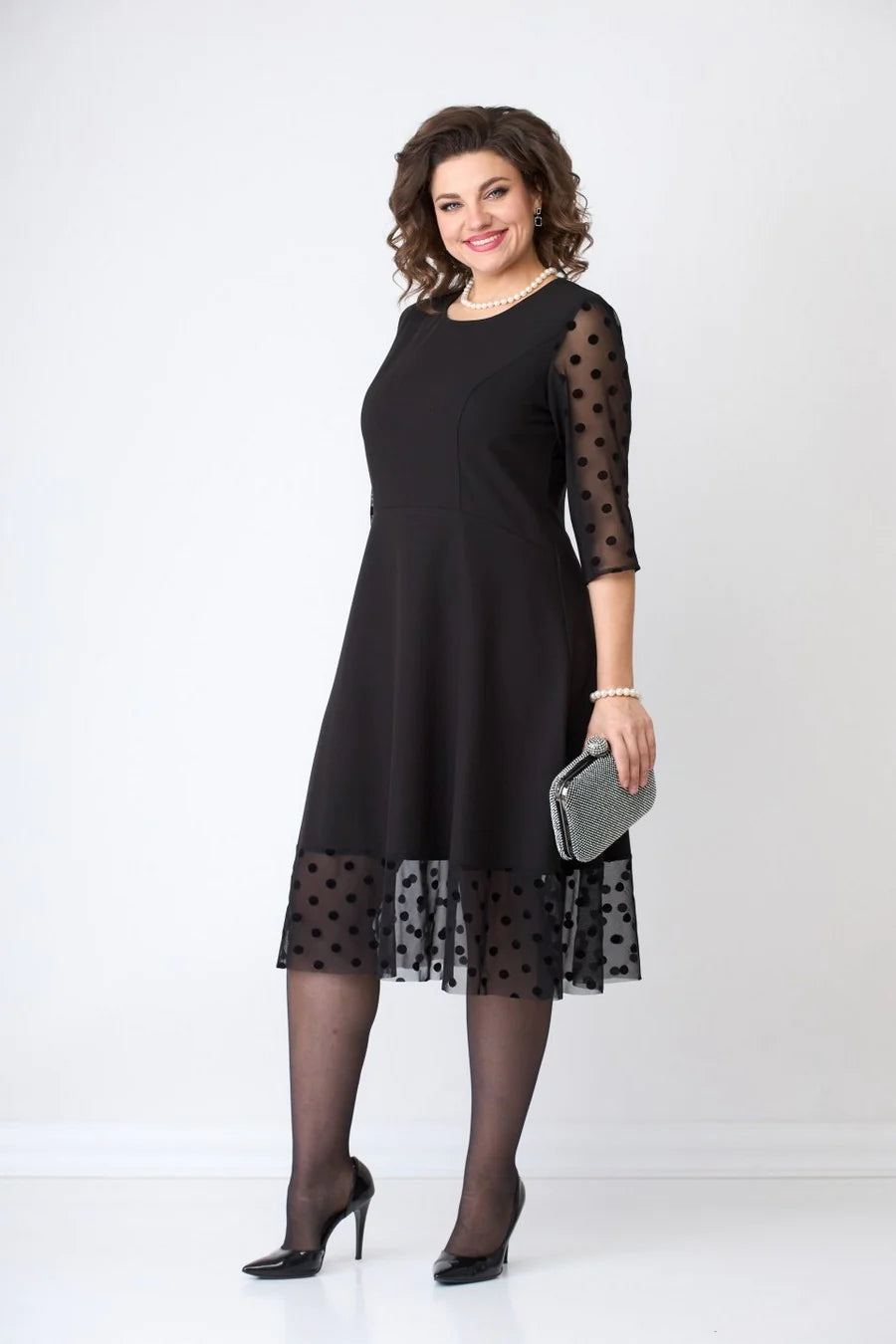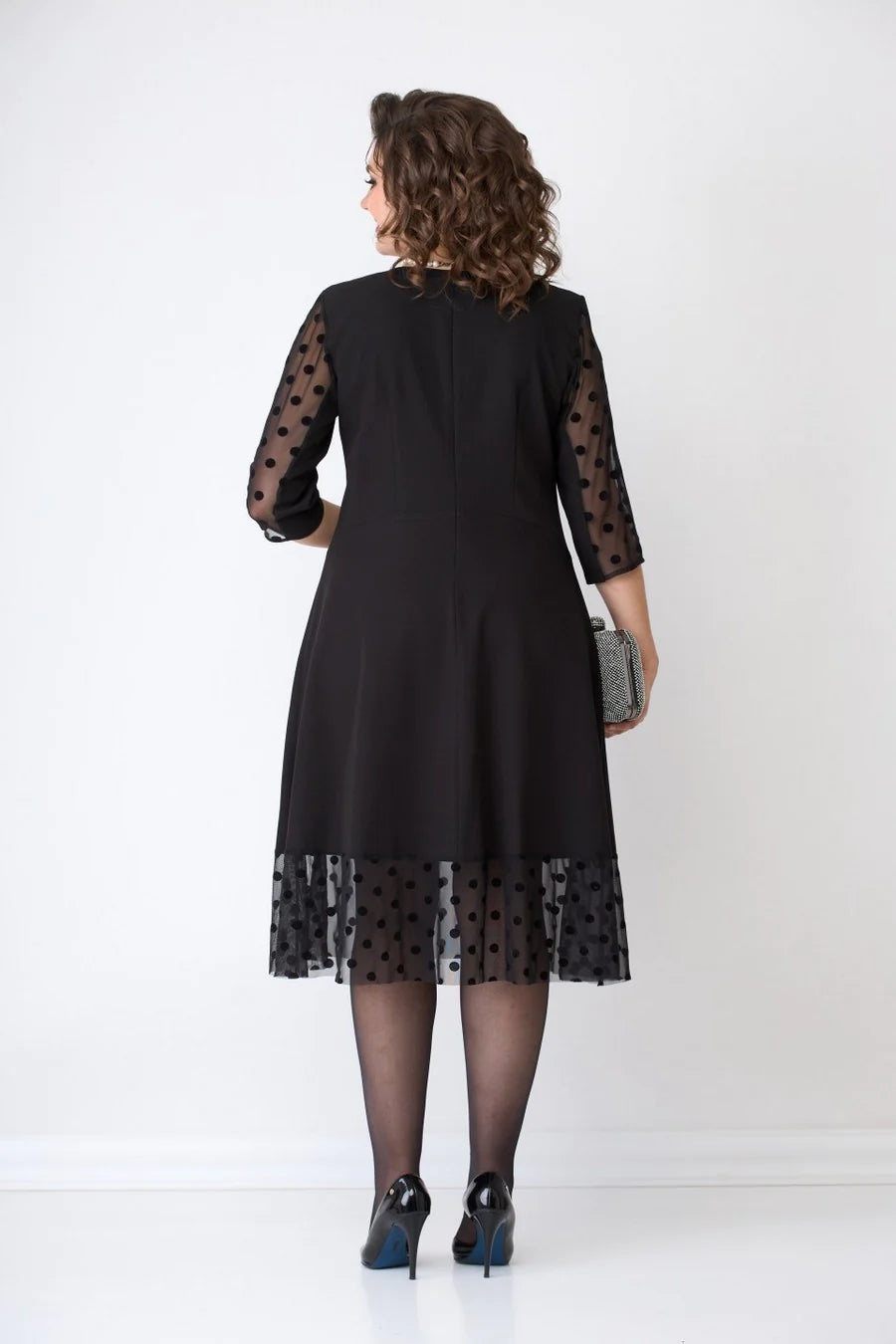 Descriere produs – Rochie peste genunchi, ușor largă, cu terminație și mâneci din voal imprimat: Eleganță delicată și confort desăvârșit...