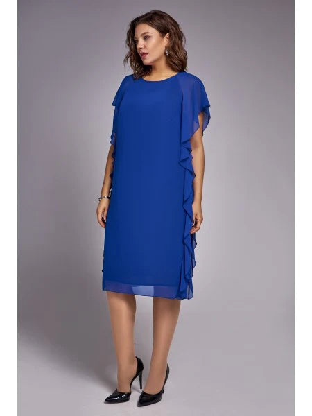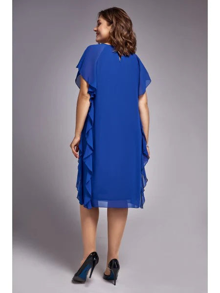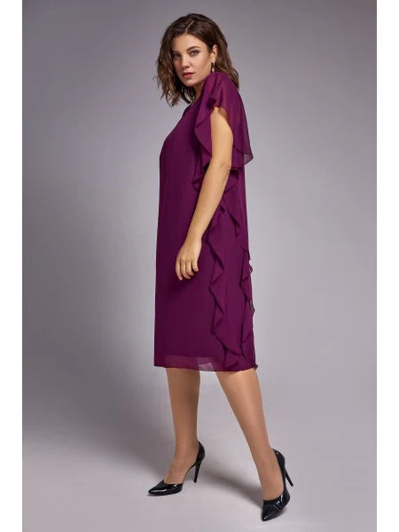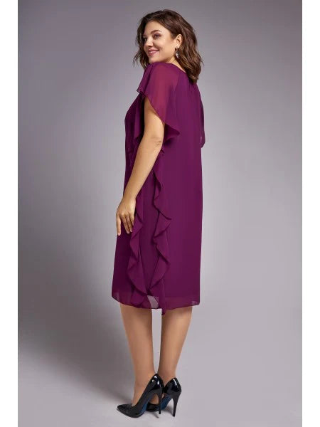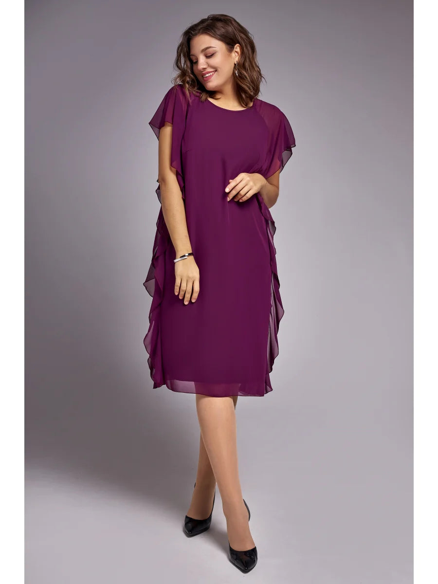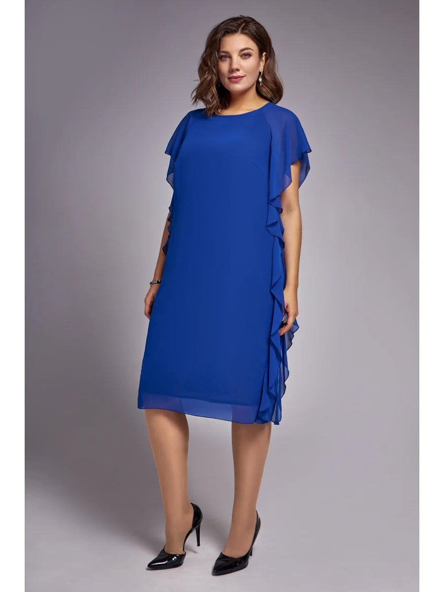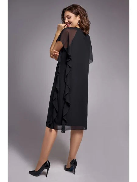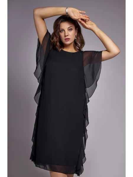 Descriere produs – Rochie dreaptă din voal până la genunchi cu mânecă largă scurtă și detaliu creț cusut: Elegantă și...