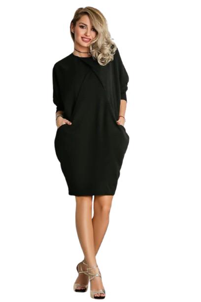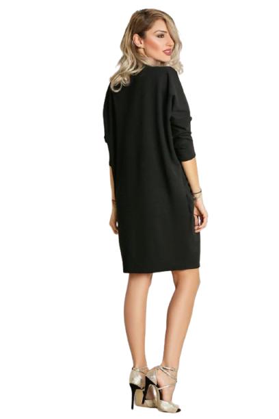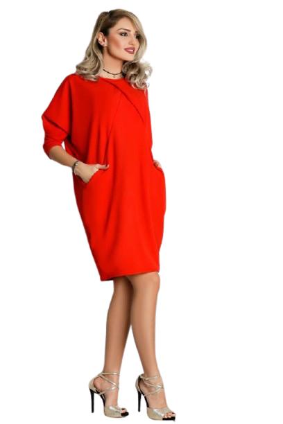Descriere produs – Rochie până la genunchi, lejeră pe șolduri și ușor mulată la bază, cu mânecă lungă: Această rochie...